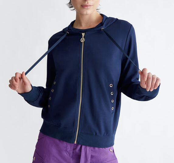 Liu Jo felpa con zip e cappuccio da donna, presenta micro logo laterale.