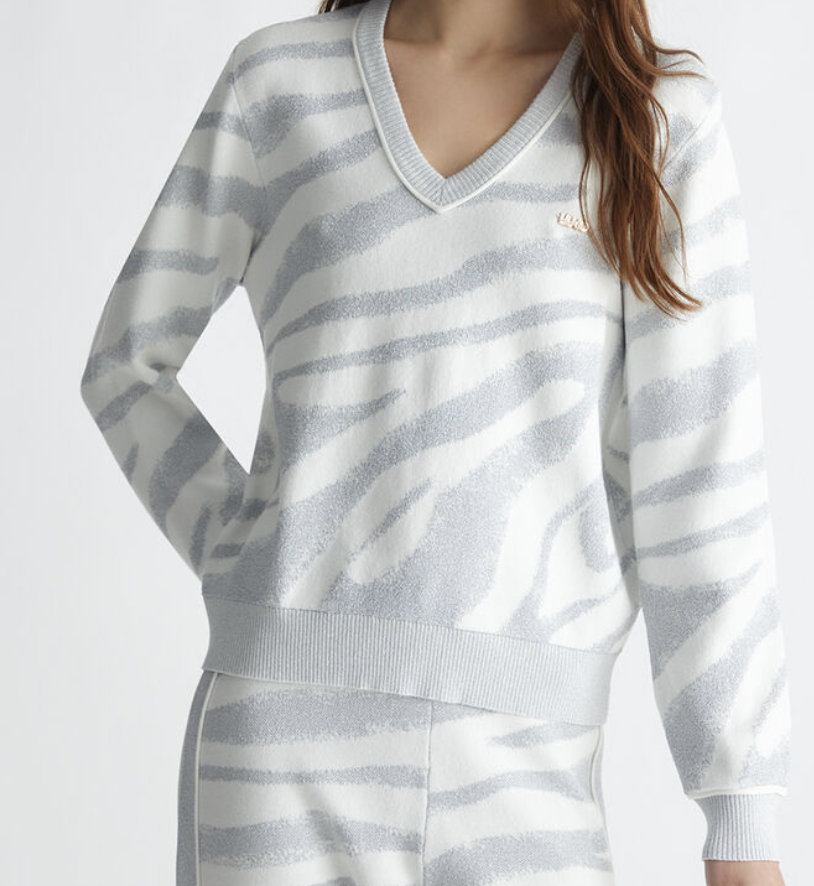 Liu JO maglione con scollo a V da donna, presenta logo laterale.